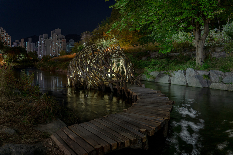 전영일 <은하수 여행자의 쉼터>(시민참여프로그램) Jeon Young-Ill and Citizens <The Galaxy Traveler’s Shelter> 시민참여로 만든 오두막집은 은하수