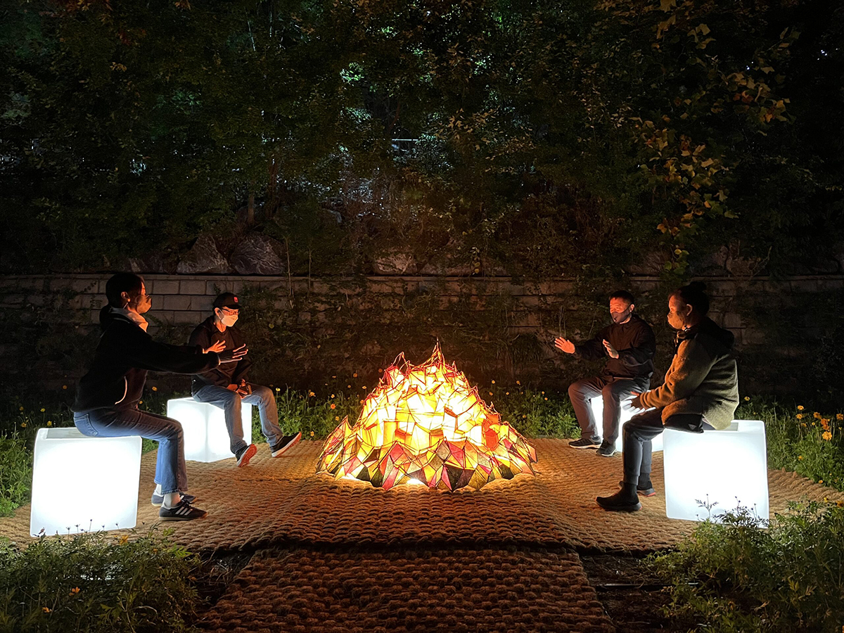 전영일 <불멍의자> Jeon Young-Ill <Fire-looking Chair> 우주에서 길을 잃은 여행자들이 하나, 둘 모인다. 꺼져가는 불을 쬐러